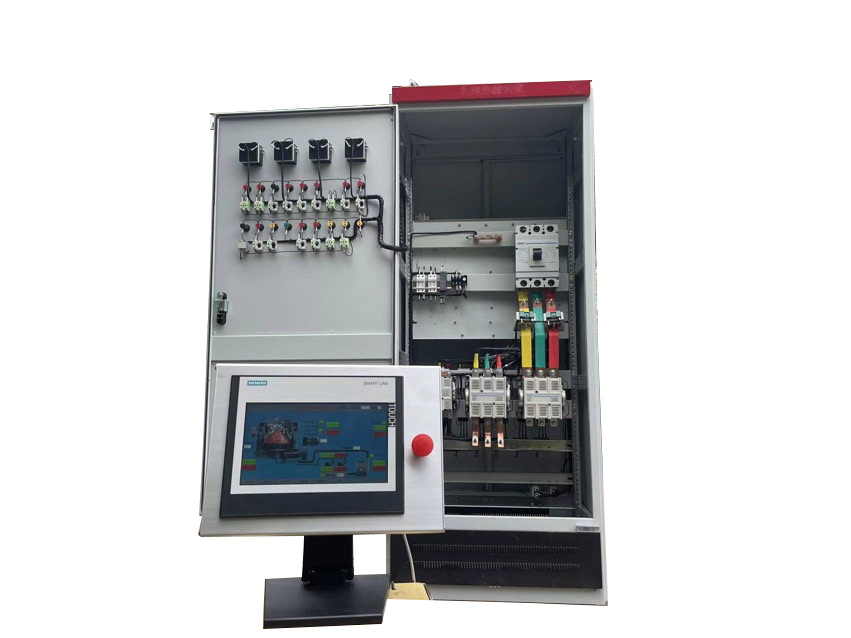 該控制柜采用西門子PLC控制;觸摸屏操作、控制、顯示為一體;具有一鍵啟動,智能化控制,電機的運行適時監(jiān)控,各電機的相關(guān)關(guān)聯(lián)控制,真正做到了關(guān)聯(lián)控制、相互制約,顯示屏具備操作功能;顯示電壓、電機電流,工作狀態(tài)參數(shù)、故障報警、自動停機等功能。
